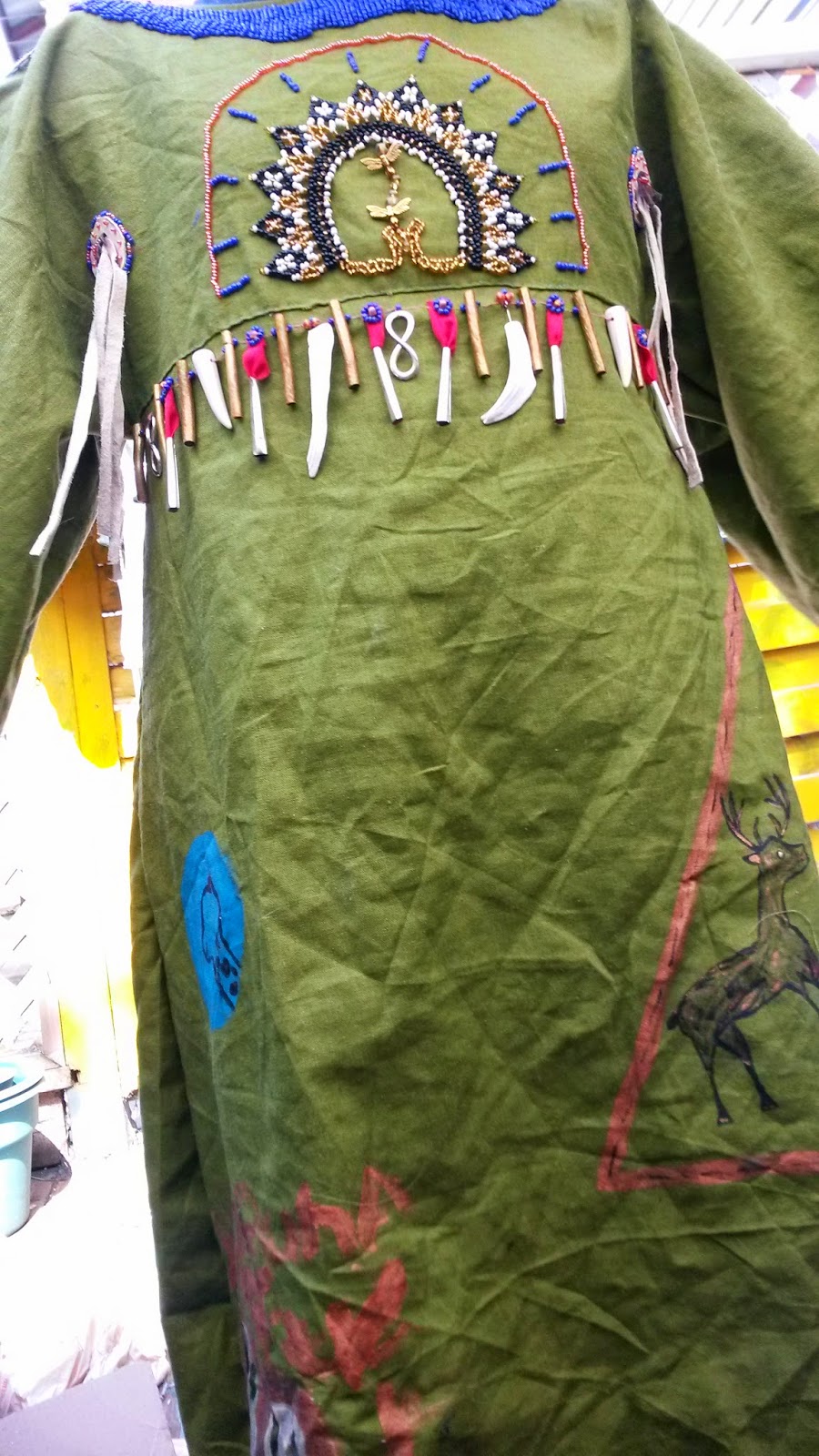 As I discussed in my post yesterday, I am really inspired by all the amazing work of native artists that the internet allows me to access. I have been trying to pull these inspirations into the first moon time dress I am making for Sophie (this is the dress for after her seclusion period). She has been helping me make design choices and we are trying to pull from the traditional designs but also work with what we have.